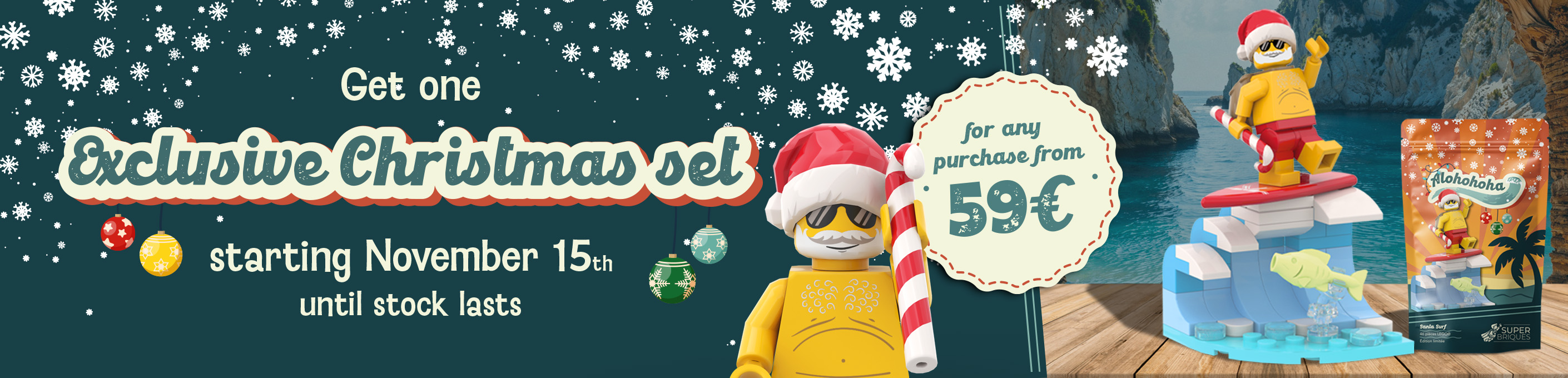 While his elves shiver at the North Pole, Santa Claus has traded his sack for a surfboard to ride the waves under the Hawaiian sun! But don't worry, he hasn't forgotten you! The Super Briques team had fun capturing this unique scene in a set full of humor and magic: Santa Surf.