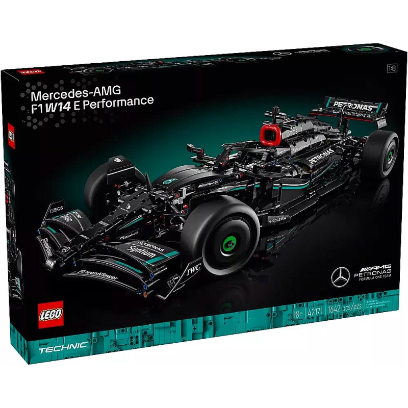 Ce set à l’échelle 1:8 comprend 1 642 pièces et mesure 63 cm de long, 26 cm de large et 13 cm de haut une fois assemblé. Il reproduit fidèlement la monoplace de la saison 2023 de l’écurie Mercedes-AMG Petronas, pilotée par Lewis Hamilton et George Russell. La livrée noire et verte, inspirée de la vraie voiture, est réalisée à l’aide de stickers .